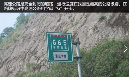 高速公路屬于高等級公路,是完全封閉的道路,通行速度在我國是最高的公路級別。在路牌標(biāo)識中高速公路與國道相同用字母“G”開頭,例如G65高速。