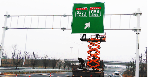 4) 高速公路、城市快速路上的門架標(biāo)志和懸臂標(biāo)志,為獲得與路側(cè)標(biāo)志相當(dāng)?shù)姆垂庑Ч诉x用比路側(cè)標(biāo)志所用反光膜等級為高的反光材料,或把門架標(biāo)志和懸臂標(biāo)志上的字符改用反射器,以改善其夜間視認(rèn)性。在有條件的重要路段,也可采用照明標(biāo)志。